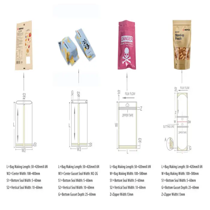The High Speed Back Middle Sealing Bag Making Machine can produce ziplock pouches specifically designed for dry food packaging.