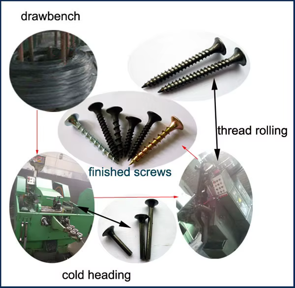 This machine is ideal for manufacturing drywall screws and fasteners for various industries, particularly in construction.