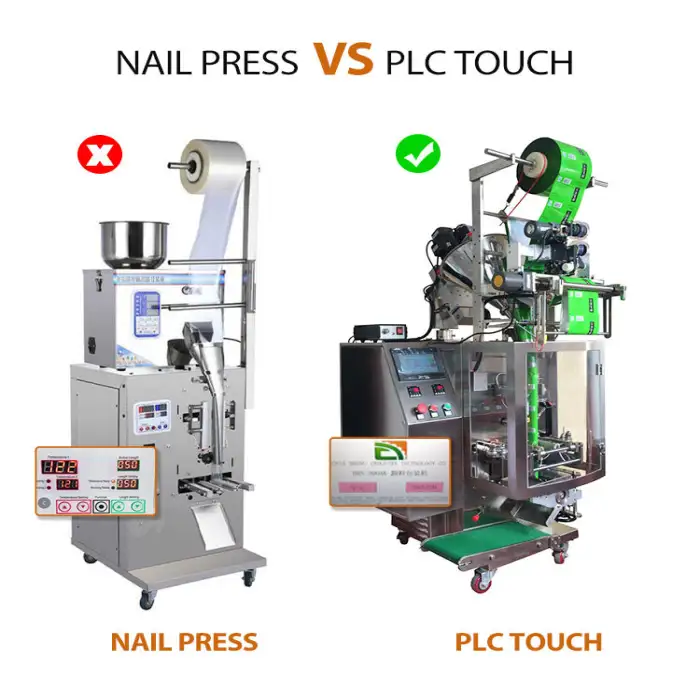 The machine is compatible with various packaging materials, including plastic, paper, film, foil, and pouches.