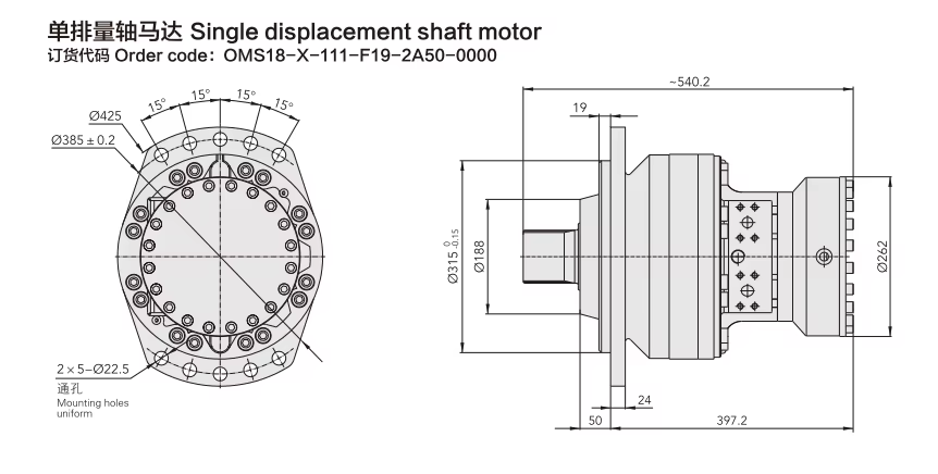 The hydraulic motor has a power rating of 62 W.