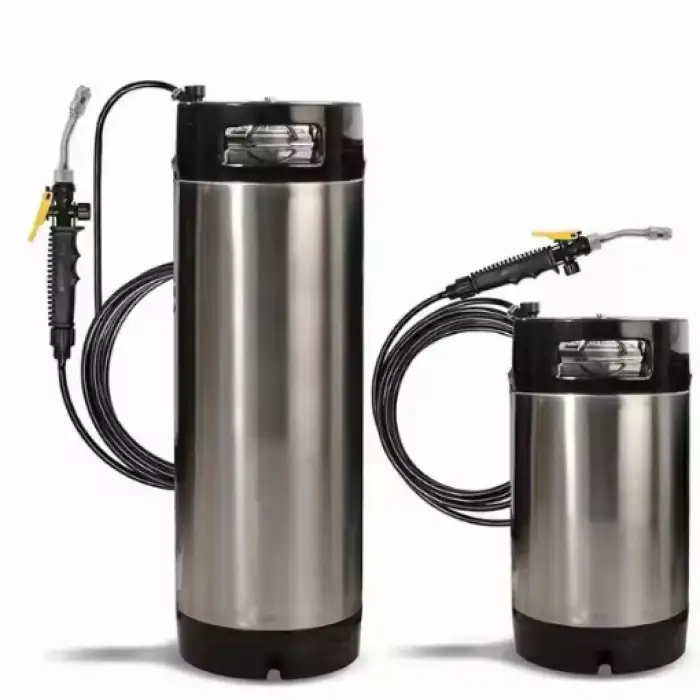 The car washer is constructed from durable steel, ensuring long-lasting use.