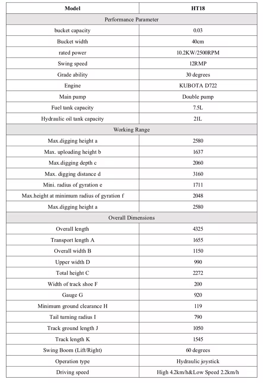 For specific size and weight details, please consult the product specifications sheet, as it provides comprehensive measurements for the excavator.
