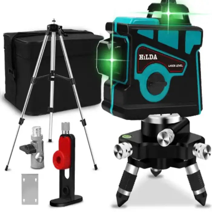 The HiLDA LS055 offers superior precision with its 360-degree green beam, multiple laser lines, and automatic leveling, making it more efficient than traditional laser levels.