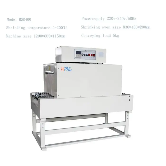 The Hipac BSD400 is a semi-automatic shrink packing machine.