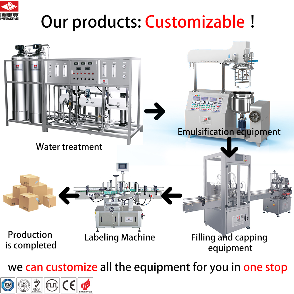 Other products include PMK-10L to 3000L Cosmetic Vacuum Emulsifying Equipment, High-Quality Multifunctional Hot Water Storage Tanks, and TAM-830G Customizable Automatic Round Bottle Labeling Machines.