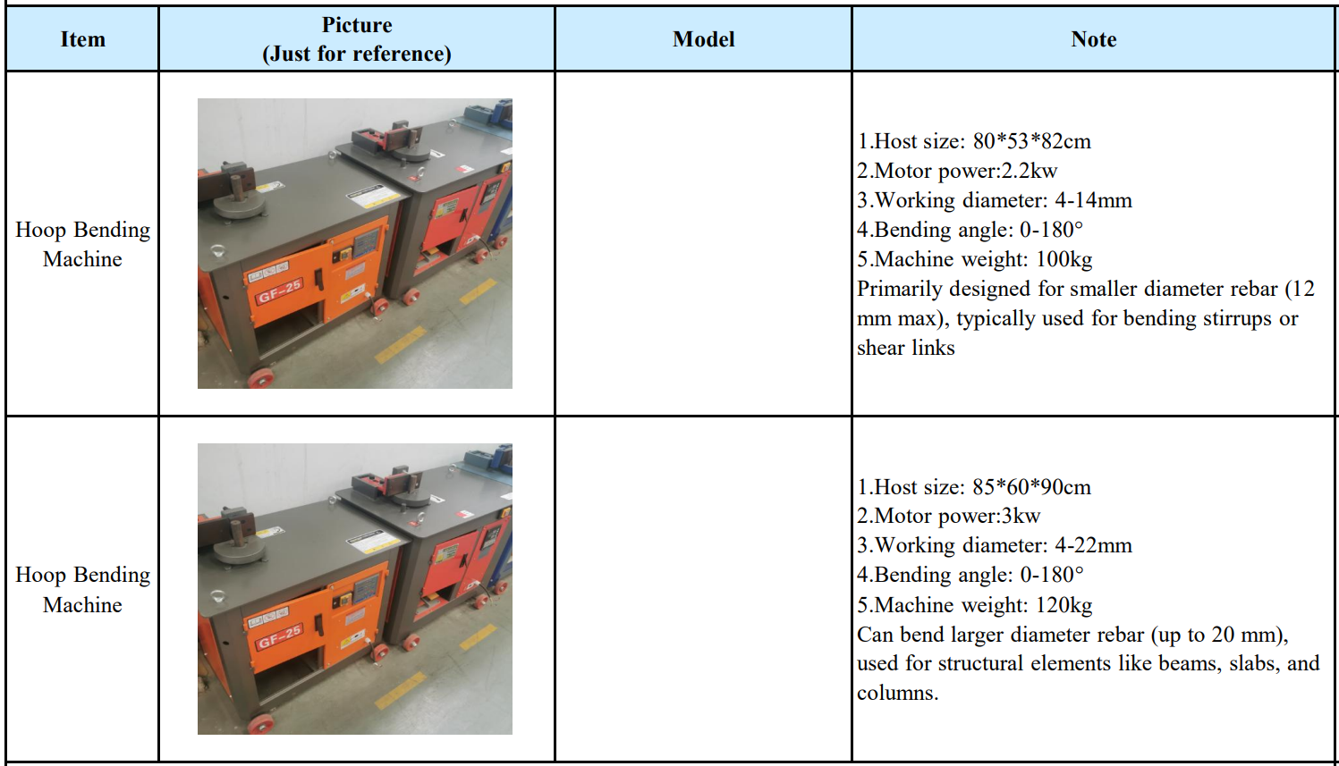 1. What sizes of rebar can the Hoop Bending Machine handle?