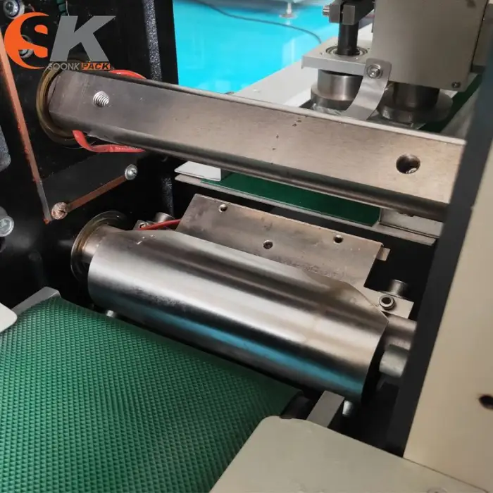 The machine is equipped with an advanced PLC control system for precision packaging.