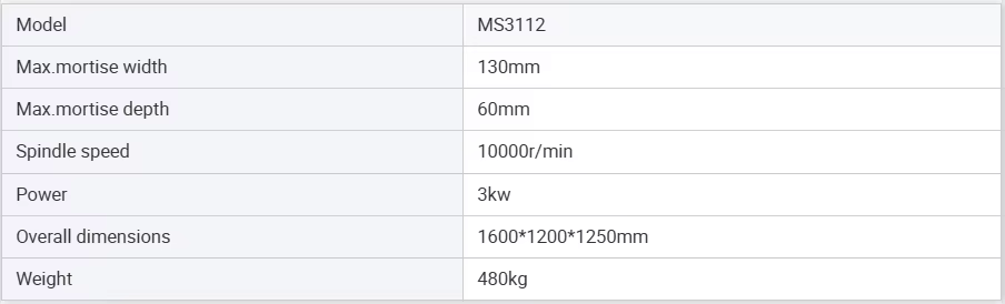 The Horizontal Double-end Mortising Machine operates at a maximum motor speed of 10,000 r/min.