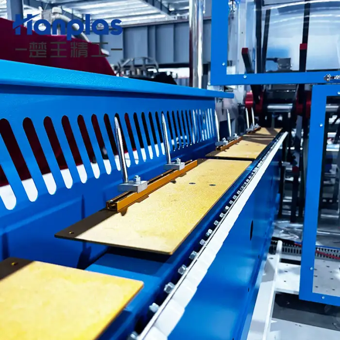 The HP-SAW Hanplas High Speed Courier Bag Wicket Bread Bag Plastic Chicken Bag Making Machine has a maximum speed of 250 bags per minute.