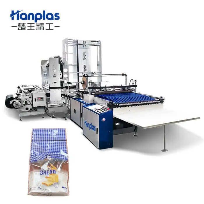 The HP-SC machine is designed for manufacturing plastic bags specifically for bread and bakery products.