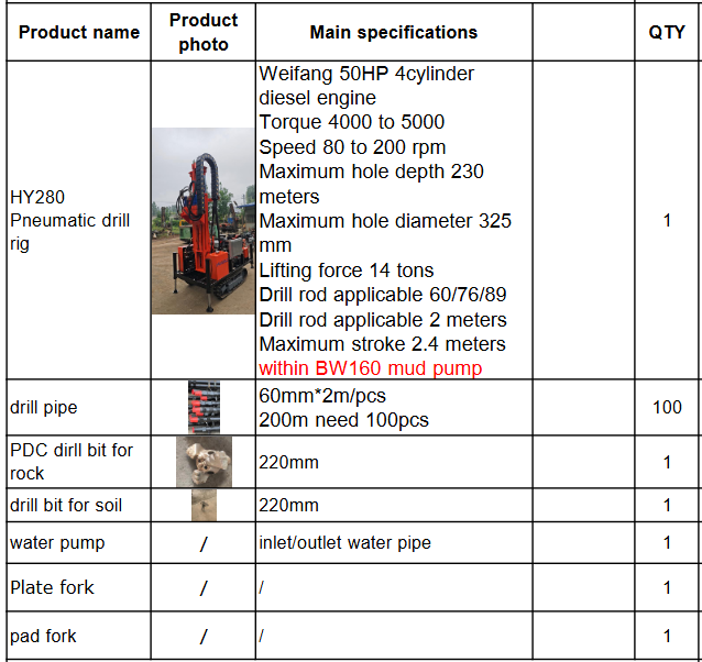 The HY280 is suitable for water well drilling in industrial, civil, and geothermal applications, as well as for various construction projects.