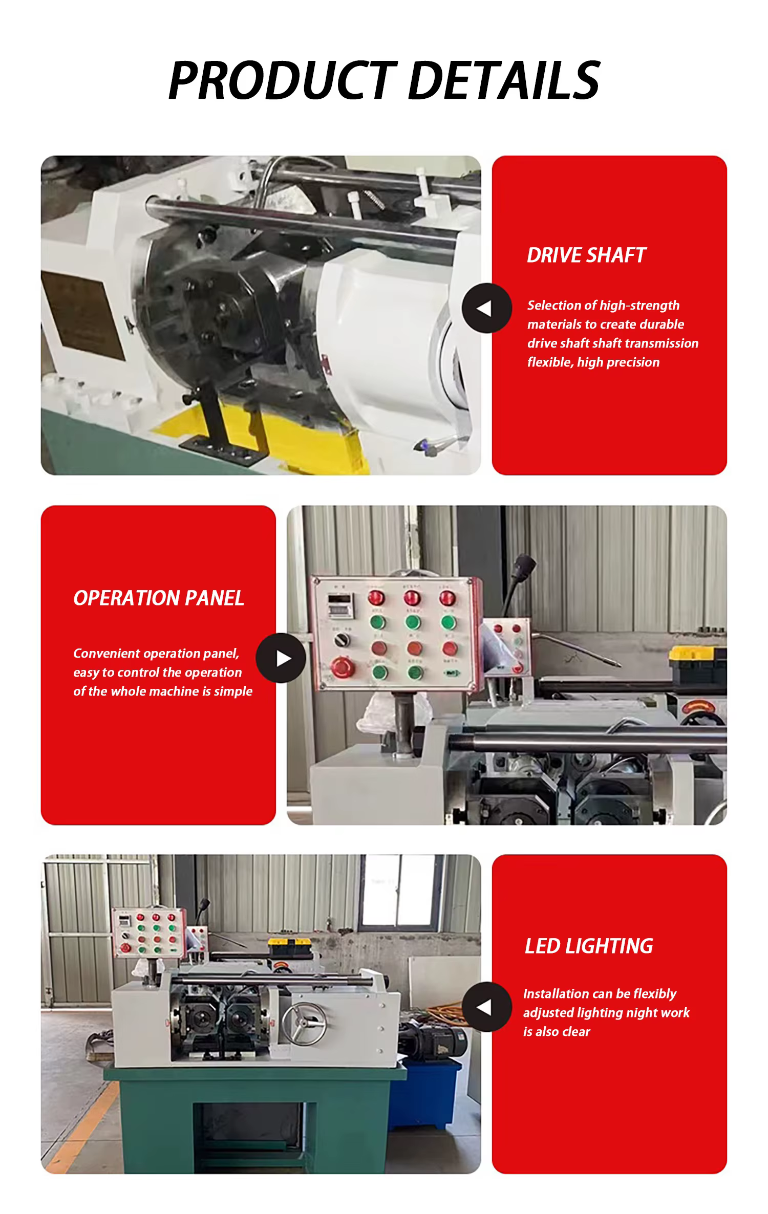 This machine is suitable for various industries, including manufacturing threads, producing high-quality fasteners, automotive parts production, and general metal working tasks.