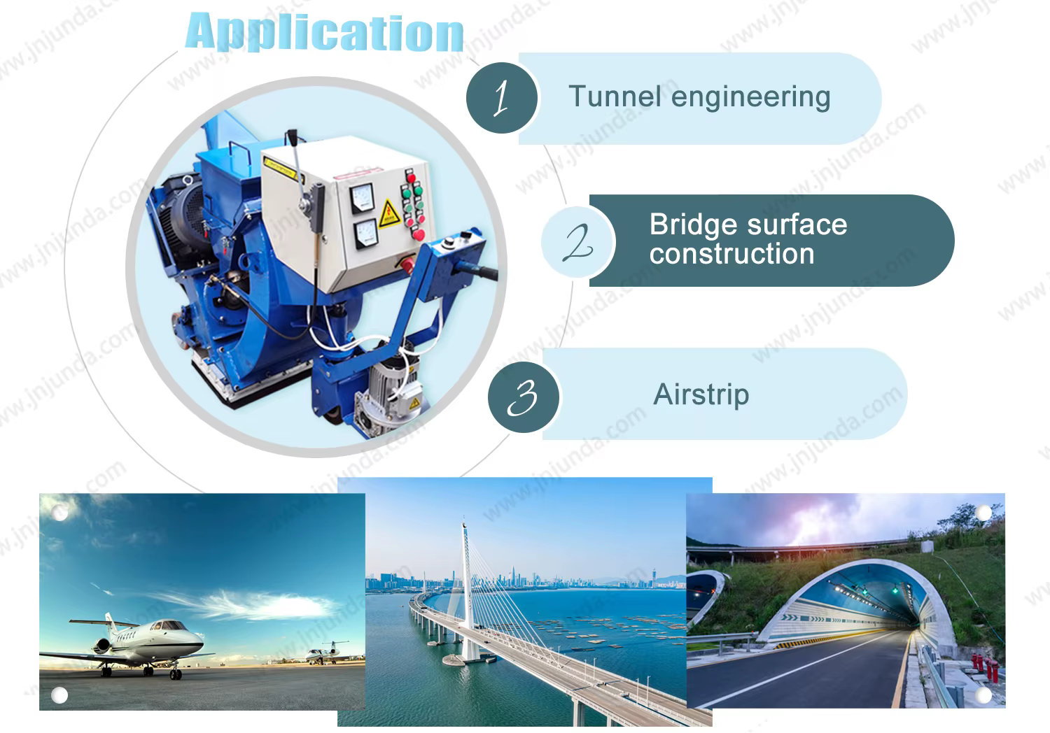 The machine is ideal for cleaning highways and roads, preparing surfaces for repairs and maintenance, and enhancing road safety.