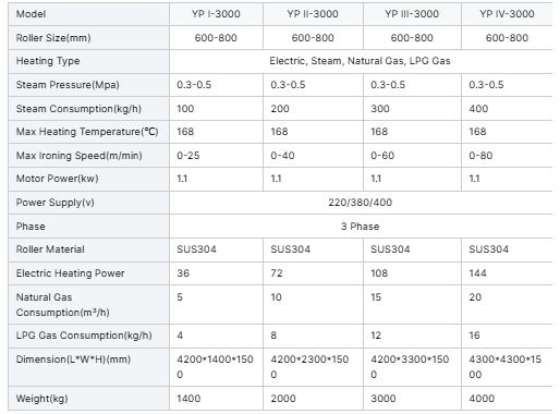 The Industrial Flatwork Ironer uses gas heating for efficient and quick ironing.