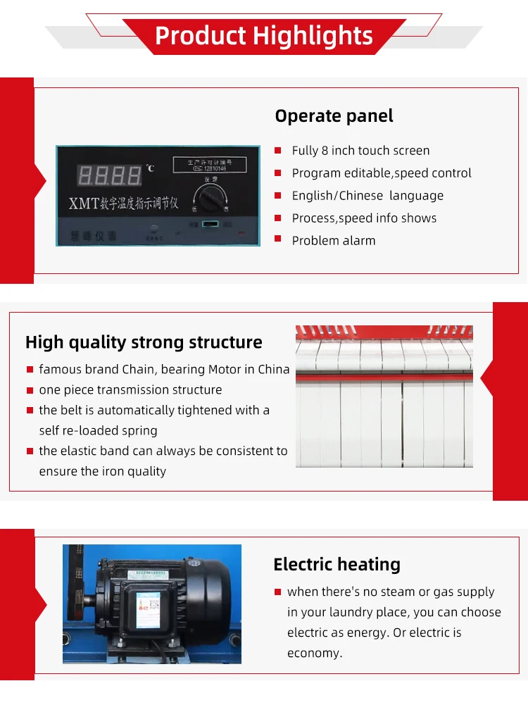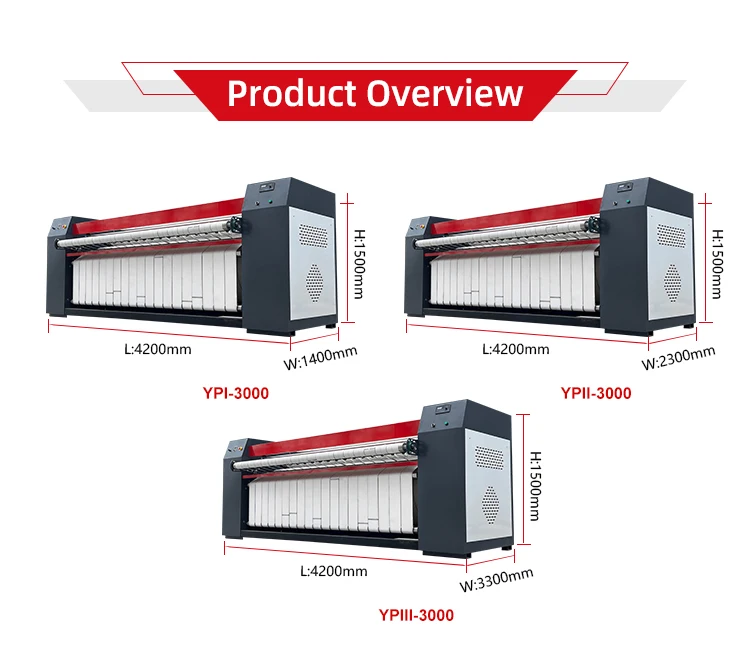 The Industrial Flatwork Ironer is commonly used in hotels, factories, hospitals, and commercial laundries.