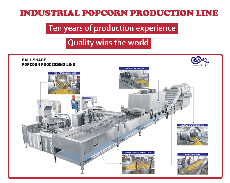 The shortest popcorn production line is 6.5 meters and consists of four parts.