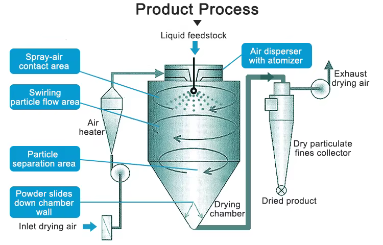 This machine is suitable for food processing, chemicals processing, instant coffee production, milk powder production, and flavoring egg milk powder production.