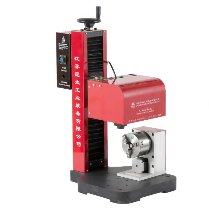 It is a pneumatic dot peen marking machine, which uses a pneumatically driven stylus to create dot-based marks on the surface.