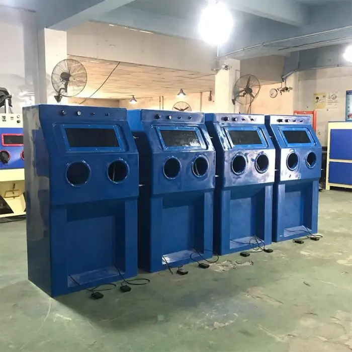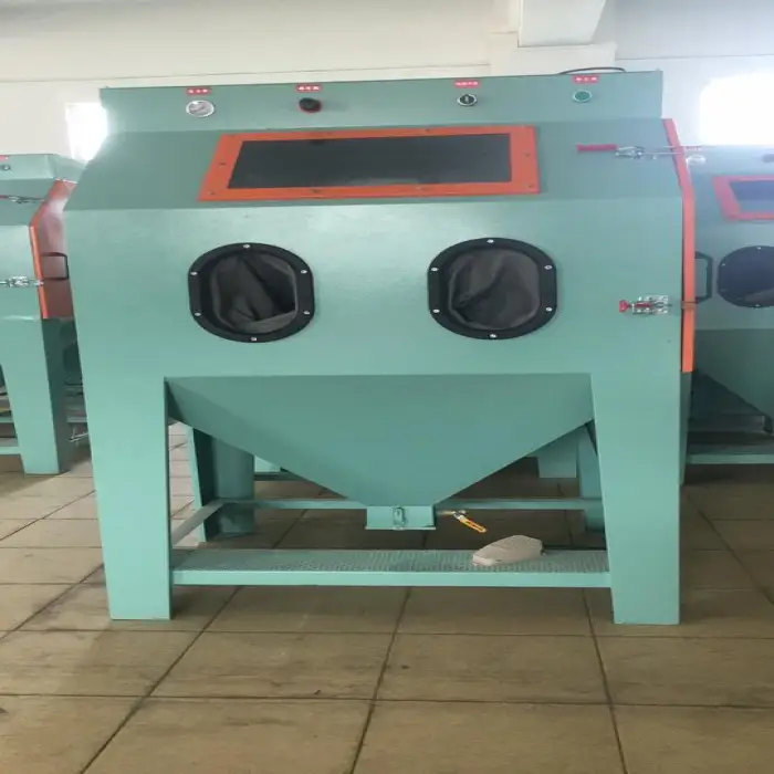 Regular maintenance includes checking the motor, cleaning the sandblasting area, and ensuring that all components are in good working order to maintain efficiency.