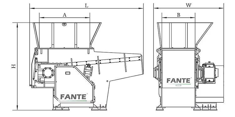 The weight of the shredder varies by model, ranging from 0.5 tons to approximately 5.5 tons.
