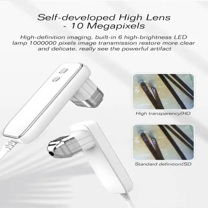 The scalp detector features advanced skin analysis technology that can detect the epidermis and UV layers, providing detailed insights into your skin.