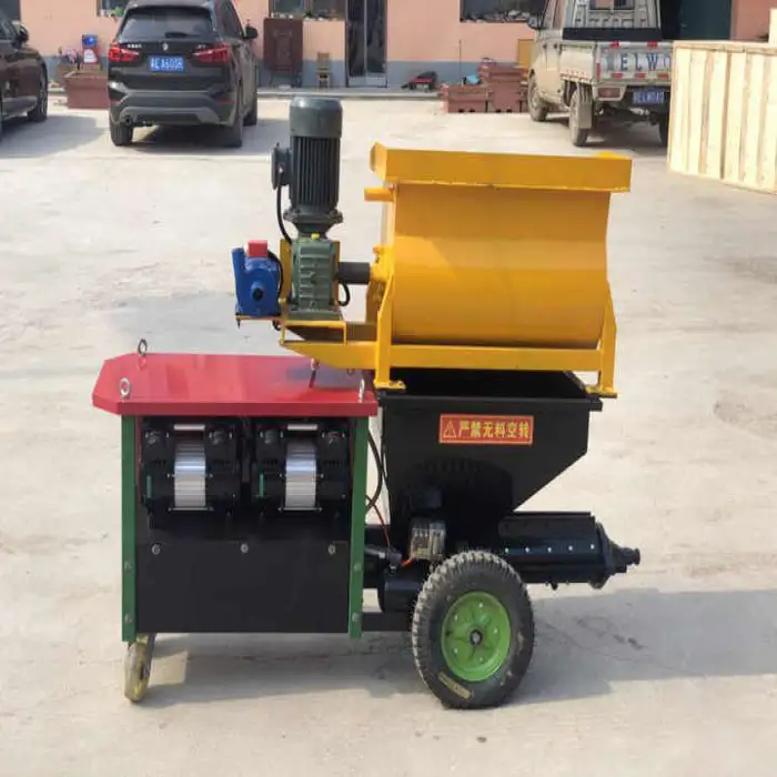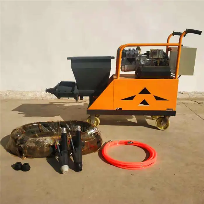 The machine can spray cement mortar on walls, ceilings, and other surfaces.