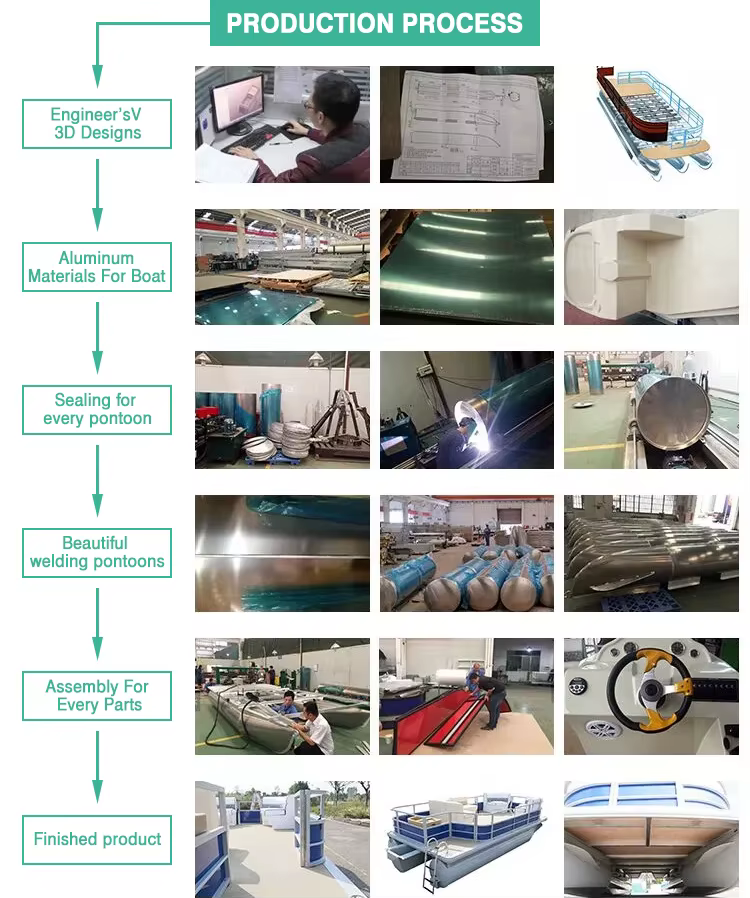The boat is constructed with welded aluminum alloy, which provides exceptional durability and resistance to corrosion.