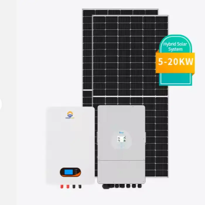 A hybrid solar system combines both solar energy and battery storage, allowing for flexibility in energy usage.