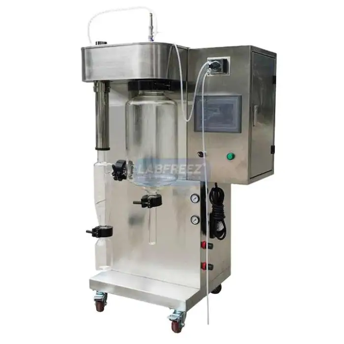 The Lab Small Mini Spray Dryer Machine is designed to efficiently dry materials by reducing moisture content, making it suitable for applications in chemical processing, food processing, pharmaceuticals, and laboratory experiments.