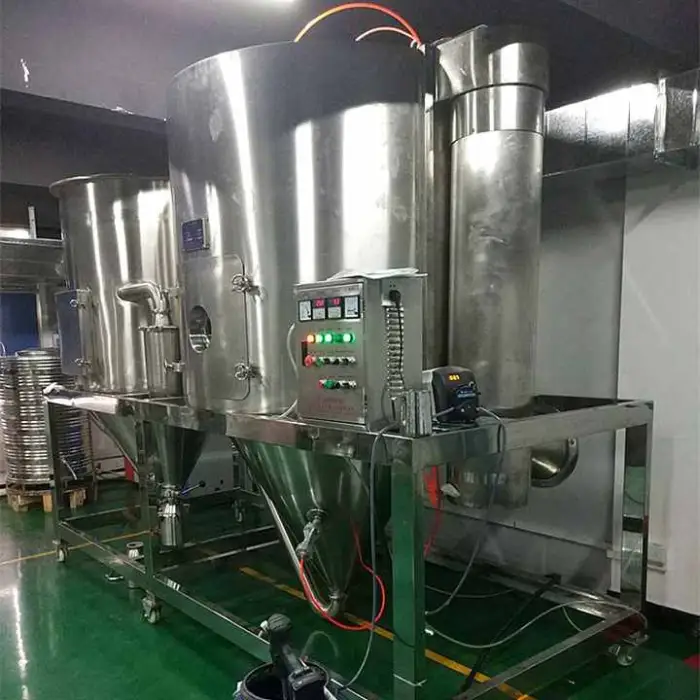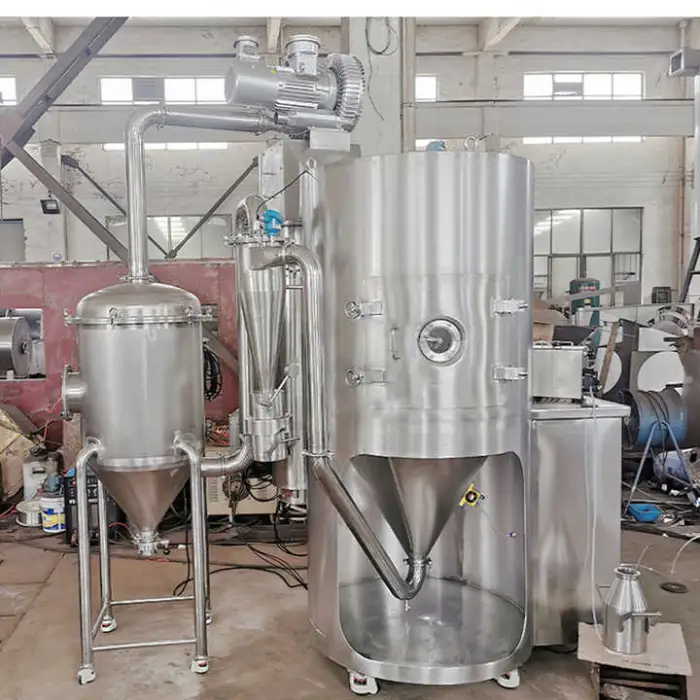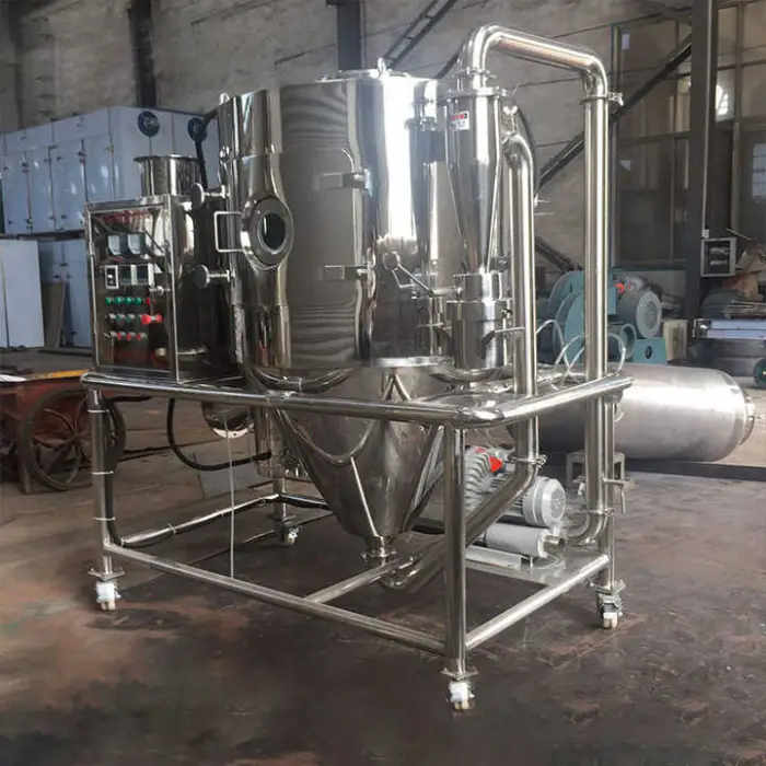 The spray dryer is made from high-quality all-stainless steel, including materials like SUS304, SUS304L, SUS316, and SUS316L, ensuring durability and longevity.
