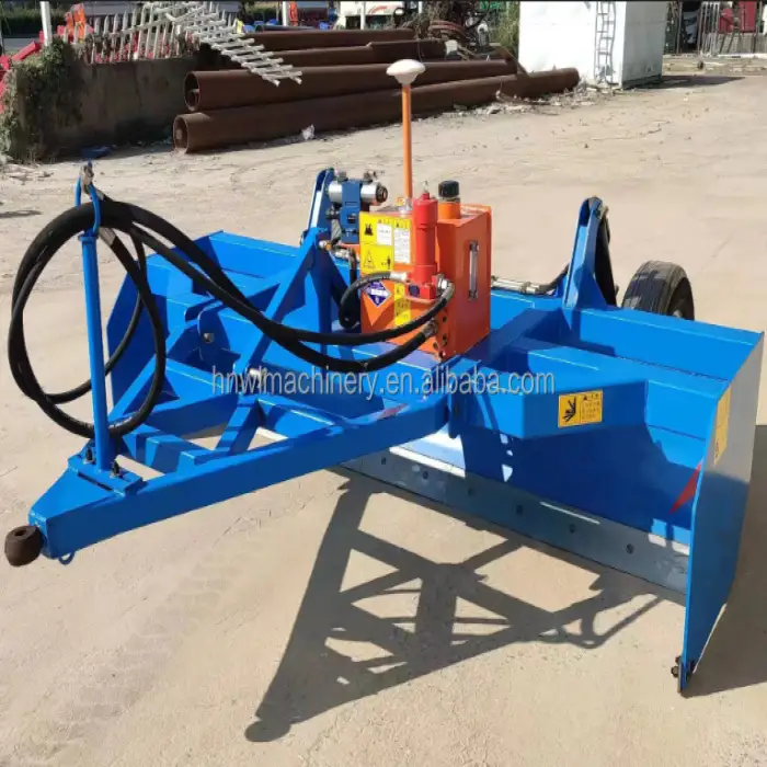 Key features include high accuracy for precise land leveling, ease of use with tractors, improved soil production, durable construction, and a machinery test report.