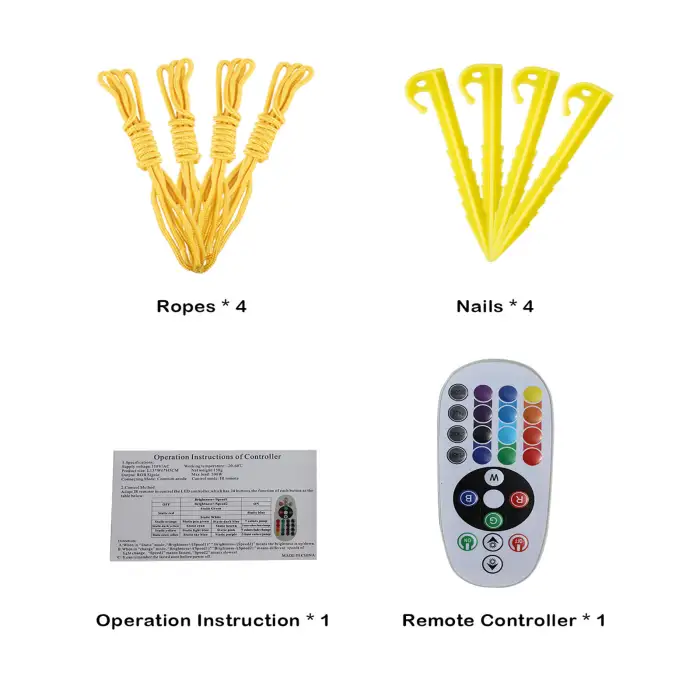 The studio comes with essential accessories including a fan, pump, and ground nails for securing it in place.