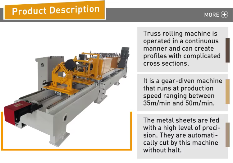 The machine is ideal for producing metal studs for drywall systems, manufacturing C channel steel frames, and creating drywall purlins for both residential and commercial building applications.