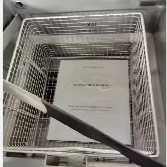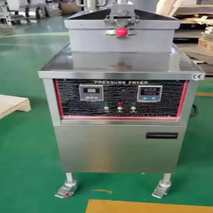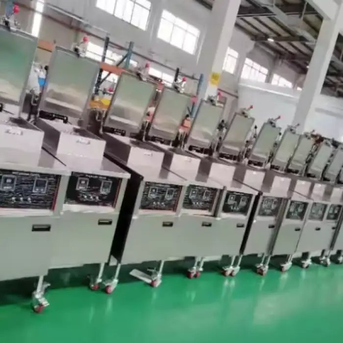 The fryer has a large capacity of 25 liters, allowing you to fry multiple batches of chicken at once.