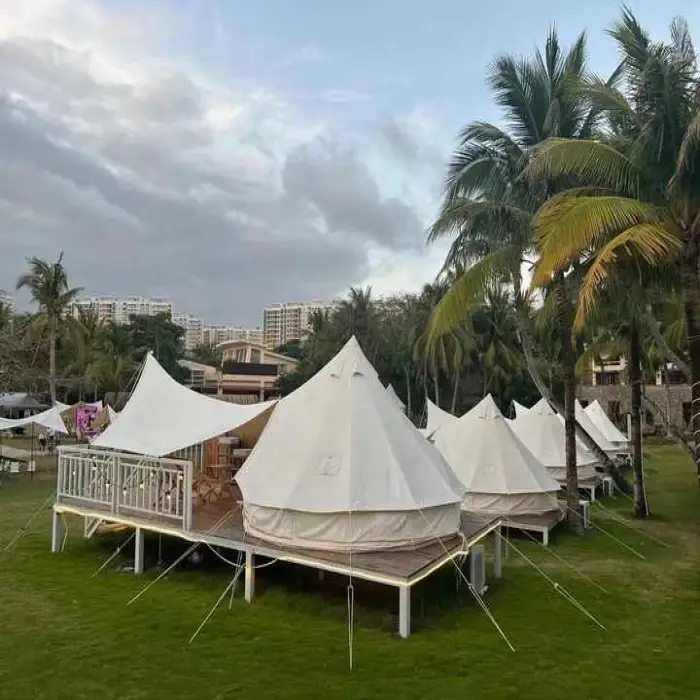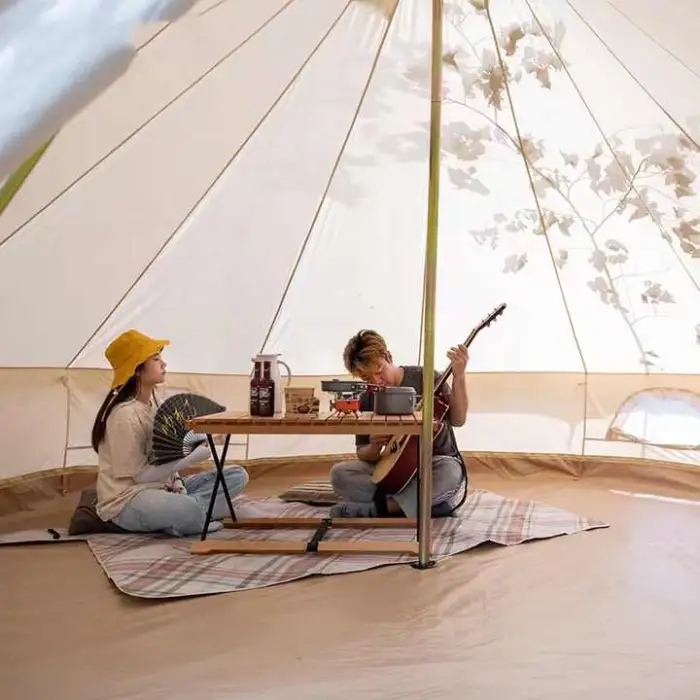 The tent features one bedroom and one living room, providing ample space for relaxation.