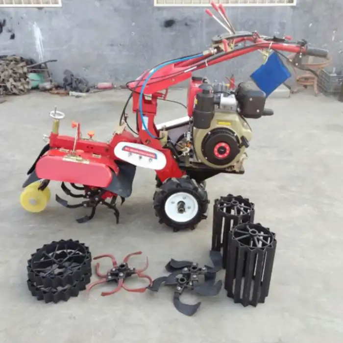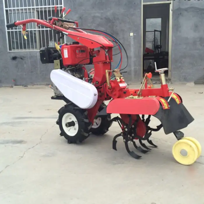 This machine is designed for tilling soil, preparing fields, managing crops, and creating ditches for water management.