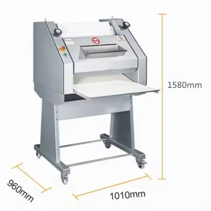 This machine is designed for commercial use in bakeries and food production settings rather than home kitchens due to its size and capacity.