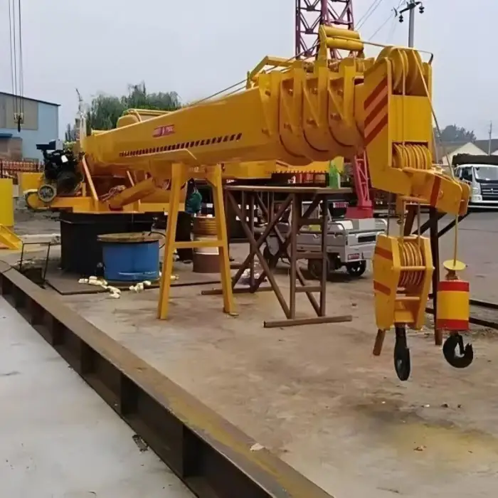 This crane uses hydraulic operation for smooth and efficient lifting.