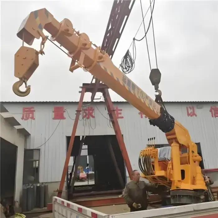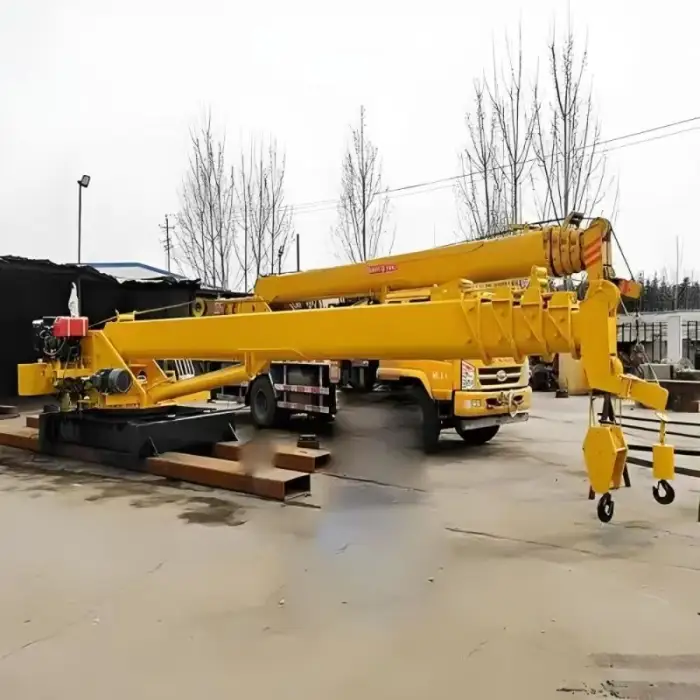 Hydraulic operation provides smooth lifting and precise control over the crane's movements.