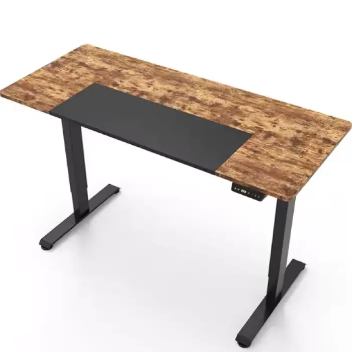 The desk features a modern design with a stylish wooden grain finish that fits seamlessly into any decor.