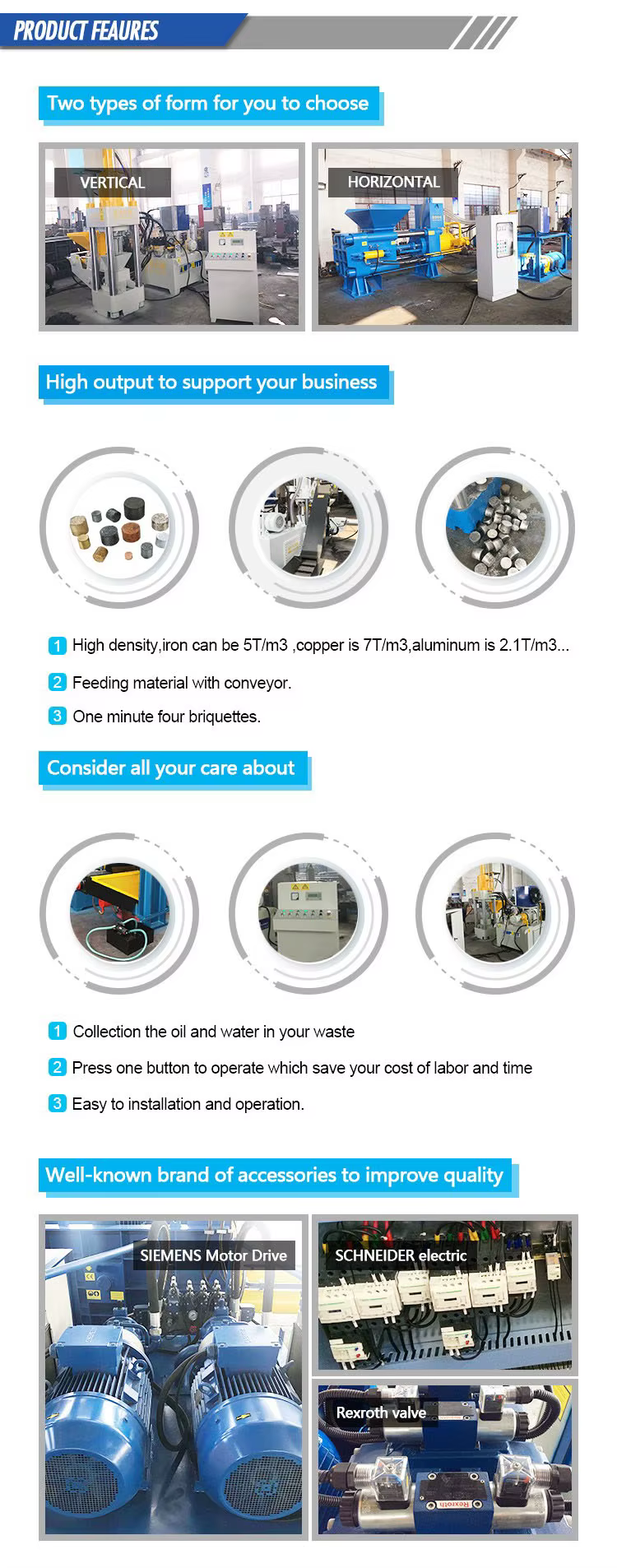 The machine features a high compression force of 500KN, allowing for efficient briquetting of different metal types.