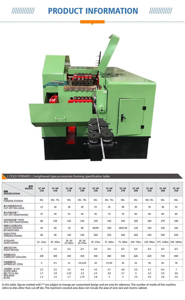 The forging power of the machine is rated at 3/4 to 11/8 and 20/27, enabling it to handle various nut sizes.