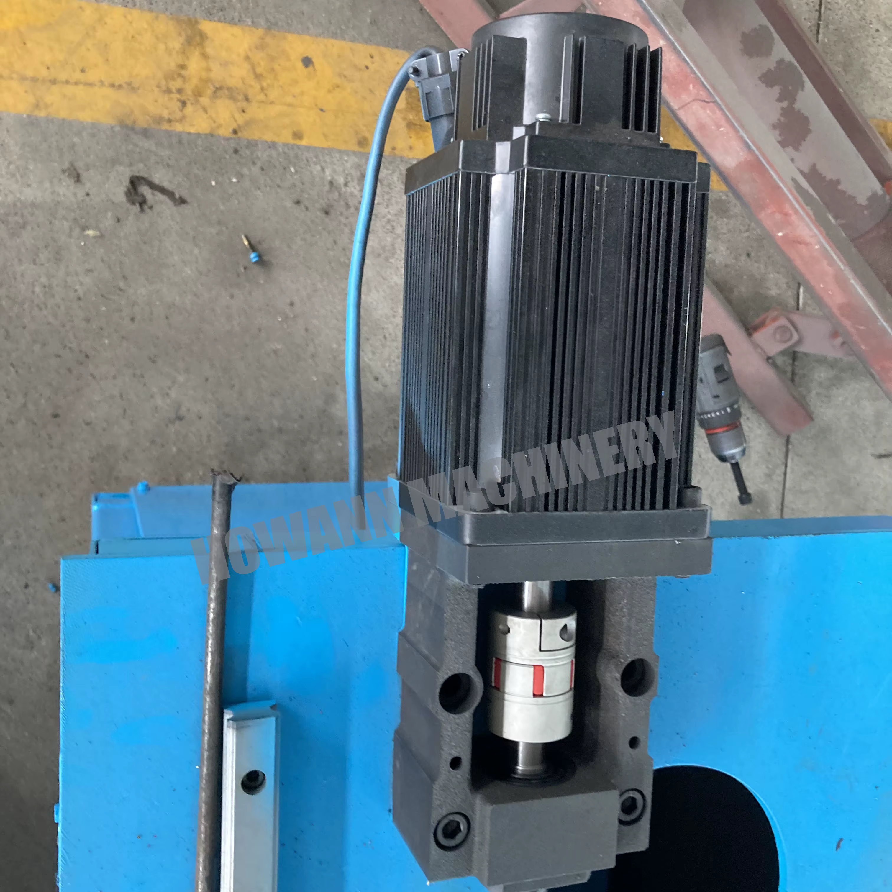 The machine features a hydraulic cutting system, which ensures precise cutting results.