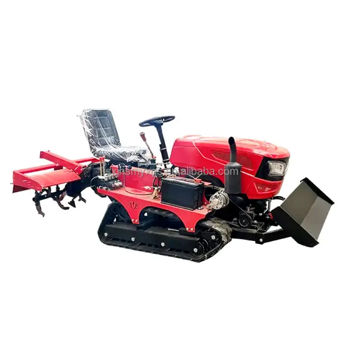 Key features include high productivity, a durable crawler tractor design, ease of use, and suitability for various farming tasks.