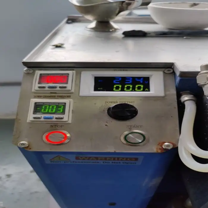 The Mini Automatic Vacuum Casting Machine operates on 220V.