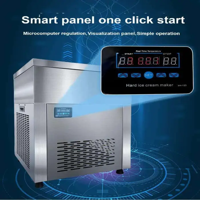 This machine is ideal for snack food factories, cafes, restaurants, ice cream shops, and events needing large quantities of ice cream.