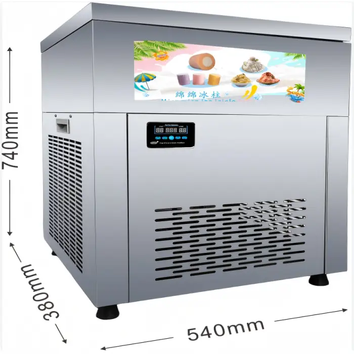 The dimensions of the Mini Commercial Tasty Flavor Gelato Machine are 54 cm in length, 38 cm in width, and 74 cm in height.