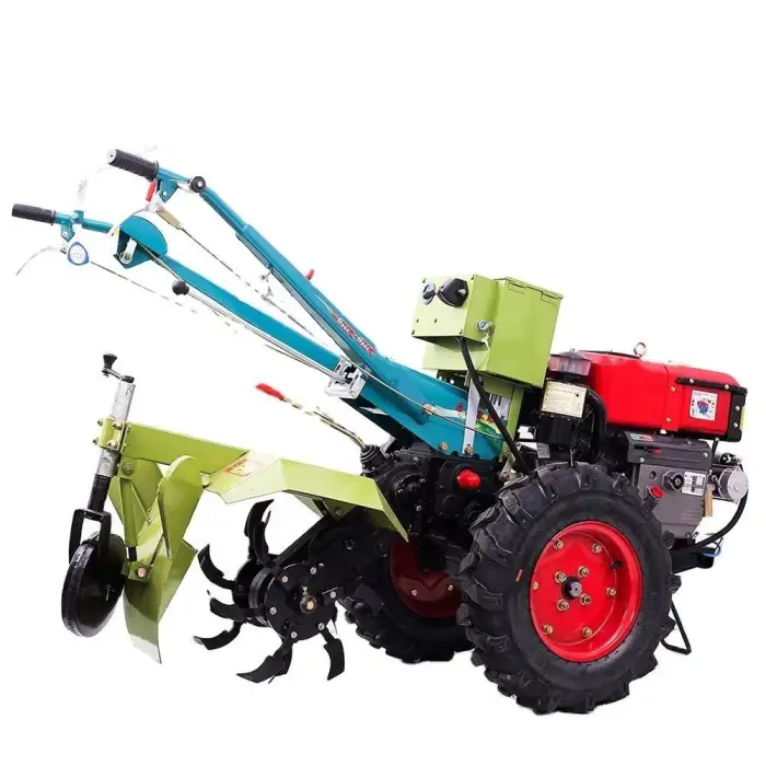The tiller can be equipped with engines from brands like Quanchai, Changchai, Huayuan, Laidong, Kop, Bailitong, and Kubota.
