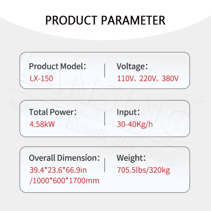 The Mini LX-150 Copper Granulator Machine can operate at 110V, 220V, or 380V, and it can also be customized for different voltage requirements.