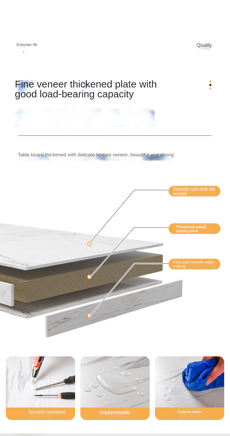 Wipe the surface with a soft, dry or slightly damp cloth. Avoid harsh chemicals, excess water, and direct heat. Use coasters or mats to protect the finish from hot items and scratches.